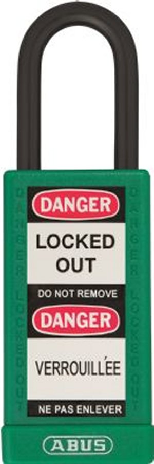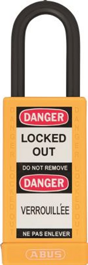 ABUS sikkerhedshængelås 74/40 m. langt hængelåshus i 10 forskellige farver. Hængelåshus og bøjle er fremstillet i plastbelagt aluminium og dermed isoleret mod strøm. Samtidig er hængelåsen ikke magnetisk. Dette gør den særdeles velegnet til brug i forbindelse med elektriske installationer. Hængelåsen leveres med én nøgle.