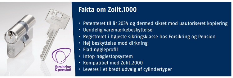 Bemærk Zolit leveres udelukkende som enslukkende system låse, der kan ikke laves under/overnøgler.