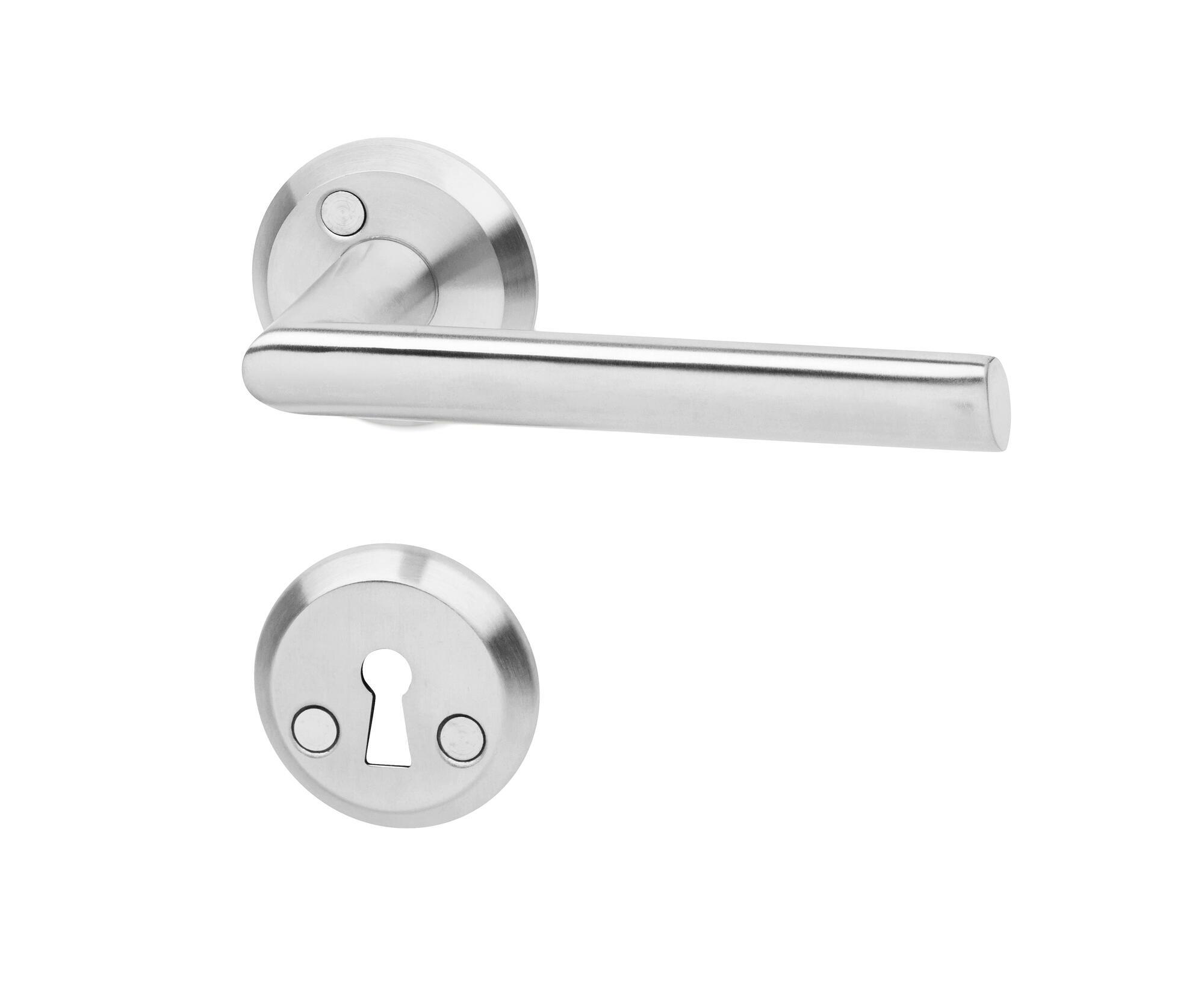 Dørgreb og nøgleskilt af rustfrit stål. Passer til dørtykkelse 38-42 mm.