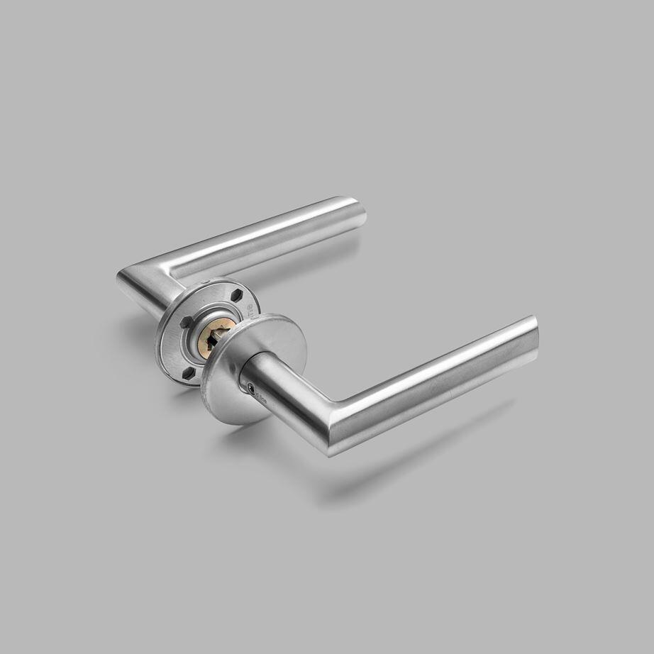 Dørgreb i slebet rustfrit stål (AISI 316) Leveres i stk. til besætning med kugleleje eller i sæt med klipsroset.