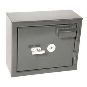 Sicherheitsschrank zum Einstecken von Schlüsseln. Von TopDanmark anerkannte Versicherung für externe Installation / Schlüsselübergabe. Kommt mit Doppelnockenschlüsselschloss. Oberfläche: Korrosionsschutz Udv. HxBxT: 370x450x200 Gewicht: 28 kg