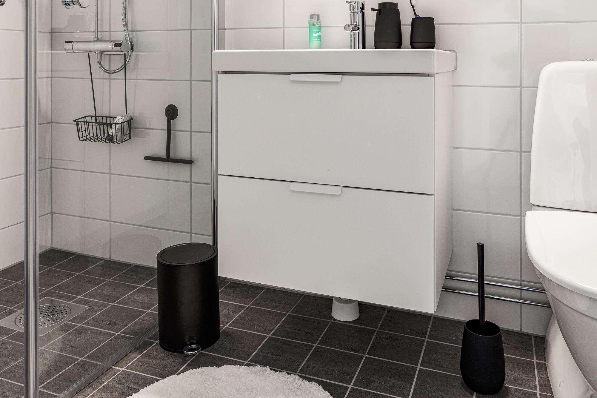 Moderne og stilfuld toiletbørstesæt af plast. Bliver en smuk indretningsdetalje på badeværelset. Gummieret overflade i mat sort finish. Diameter 111 mm. Højde 370 mm.
