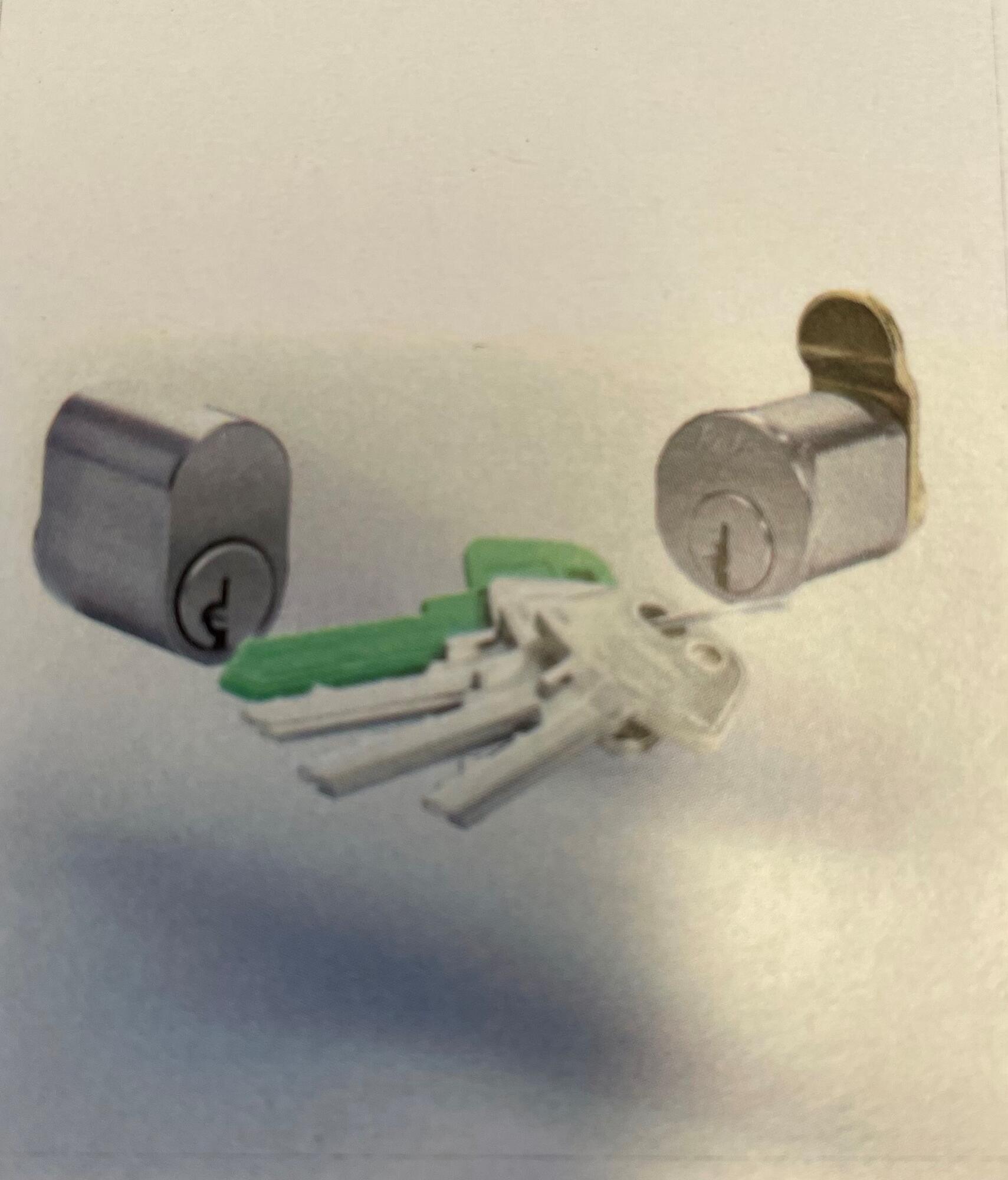 Serie 1200 cylinder (6-stifter). Patenteret teknologi, kaldet d12. En kodebrik af plast, hvoraf opbygningskoden fremgår, medfølger. Fastgøres med 2 skruer.
