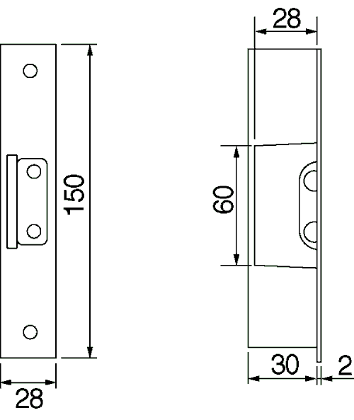 Winkelendplatte für zugelassenes Ruko Assa Modulschloss 9788, wenn dieses als Zusatzschloss montiert wird. Zusätzlich zu den frontmontierten Schrauben wird die Endplatte zusätzlich mit zwei Schrägschrauben durch das Bolzenloch verstärkt.