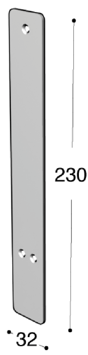 Abmessungen: 2 x 32 x 230 mm. Ruko-Line wird aus gebürstetem säurebeständigem Edelstahl AISI 316L hergestellt.