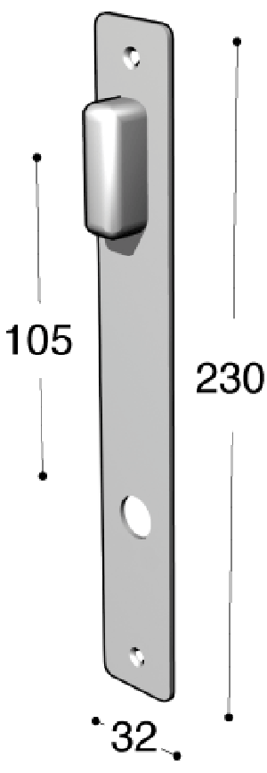 Abmessungen: 2 x 32 x 230 mm. Achsabstand: 105 mm. Ruko-Line wird aus gebürstetem säurebeständigem Edelstahl AISI 316L hergestellt.