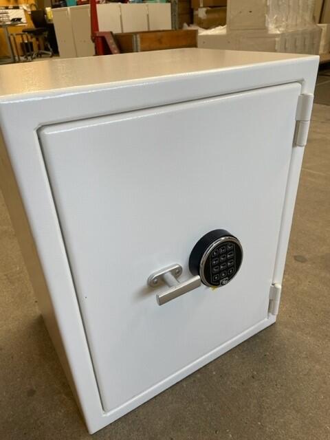 Der Schrank wird mit einem Tresorschloss inkl. 2 Schlüssel oder elektronisches Codeschloss.