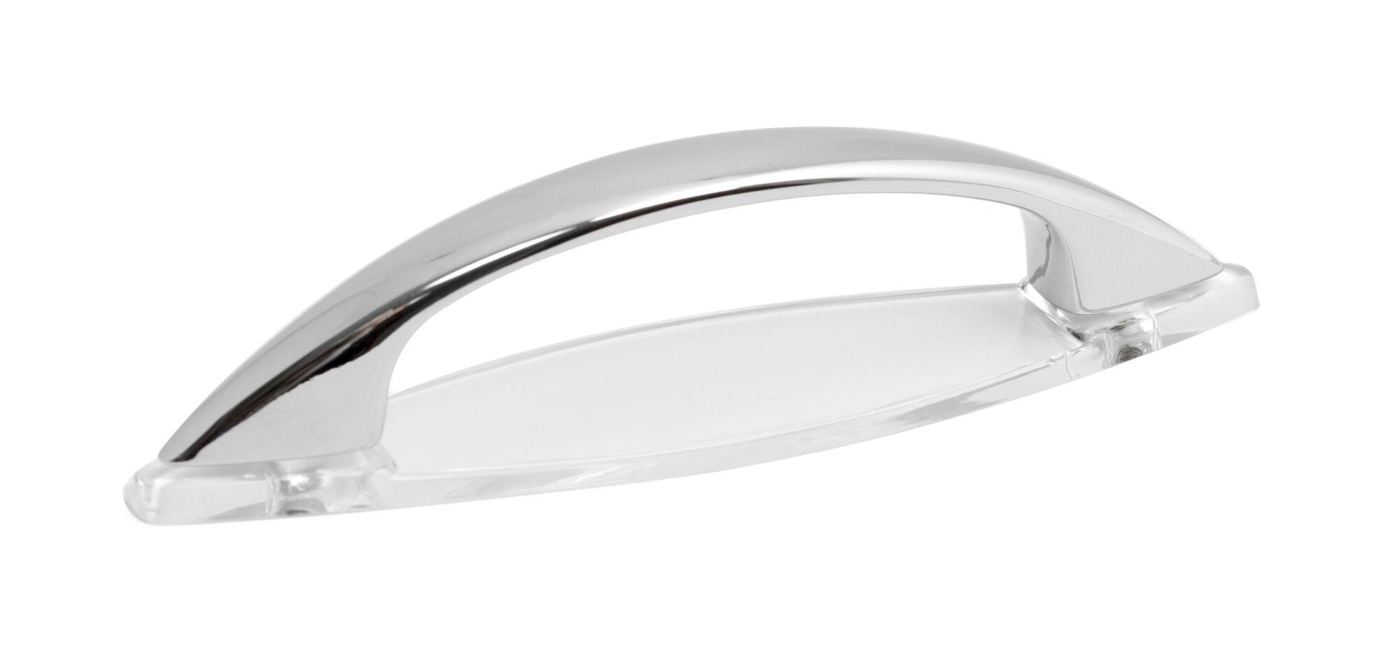 Møbelgreb i zink/zamak med krom finish. Længde: 120 mm. Højde: 20 mm. Centermål: 86 mm. Skruer medfølger. Kan med fordel monteres med medfølgende underlagsbrik. Et greb med bløde linjer til låger og skuffer.