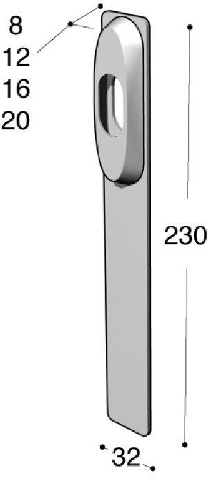 Abmessungen: 2 x 32 x 230 mm. M5-Buchsen angeschweißt. Ruko-Line wird aus gebürstetem säurebeständigem Edelstahl AISI 316L hergestellt.