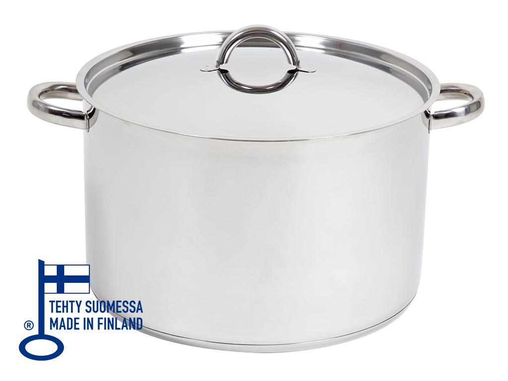 Fremstillet af højkvalitets rustfrit stål, anstændig størrelse gryde til hård brug. Kogning er praktisk udendørs sammen med anden madlavning/grillning. Prøv også med en blancheringskurv. Velegnet til sommerkøkkengas, gasbrænder D-300, D-350 eller D-400. Også velegnet til kogeplader og åben ild.