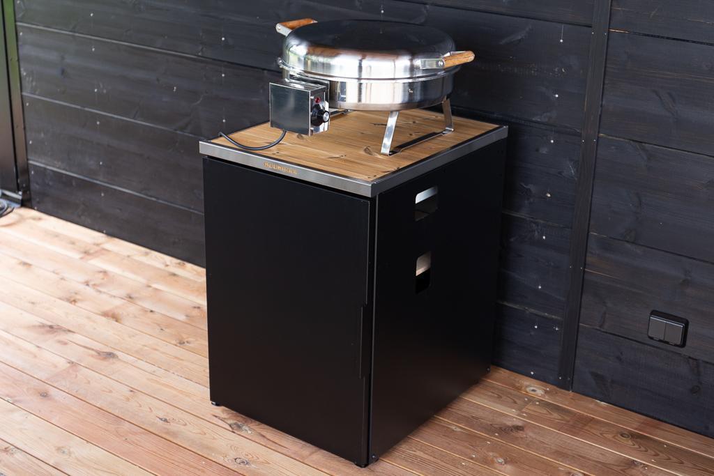 Byg dine drømmes sommerkøkken med Muurikka Summer Kitchen Premium-moduler! Ved at kombinere moduler af forskellige størrelser (bredde 1000 mm og 500 mm) kan du bygge et sæt, der passer bedst til dine behov og giver dig mulighed for at lave mad med forskellige varmekilder. Modulerne har stærke strukturer og en stilfuld finish. Modulsættene kan kombineres med alle Muurikka pander og andet tilbehør. Sommerkøkkenbordet og -skabet tilføjer mere opbevaringsplads til gården eller terrassen og holder alt dit udstyr organiseret til det næste måltid. Nemt, rent og behageligt! Separat tilgængeligt tilbehør: Hjul gør det nemt at flytte et udekøkken nemt. Et sidebord i stål giver dig mere plads til at lave mad. Bemærk!Hvis du installerer et sommerkøkkenbord eller -skab mod en brændbar væg, skal du bruge en separat varmebeskyttelsesplade, når du bruger en gasbrænder. Når du bruger gasbrænderen, må du ikke skubbe sommer køkkenbordet eller skabet mod væggen. Efterlad i stedet 10 centimeter mellem sommerkøkkenbordet eller -skabet. Sommerkøkkenbordet og -skabet er monteret til opbevaring af en gasflaske. Når du bruger gasbrænderen, skal du tage gasflasken ud for en sikkerheds skyld. Før du lægger cylinderen tilbage til opbevaring inde i bordet eller kabinettet, skal du sikre dig, at cylinderens ventil er lukket.