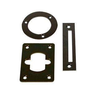Beslag sæt til møbellås 1608 med cylinderring, slutblik og bagplade.