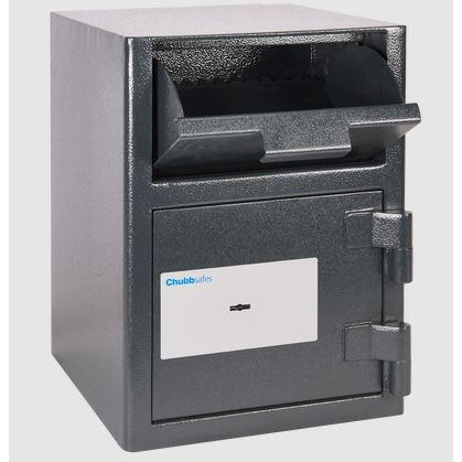 Deponeringsskabet er konstrueret med en 10mm. massiv ståldør og et 6mm. stålkabinet. 20mm låsebolte.