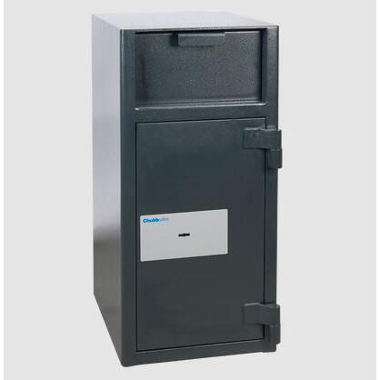 Deponeringsskabet er konstrueret med en 10mm. massiv ståldør og et 6mm. stålkabinet. 20mm låsebolte.