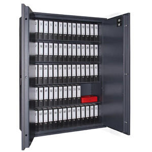 Leveres m/nøglelås. Inkl. 4 hylde. Plads til 75 ringbind. Godkendt til opbevaring af kr. 5.000,00 u/alarm og kr. 15.000,00 m/alarm.