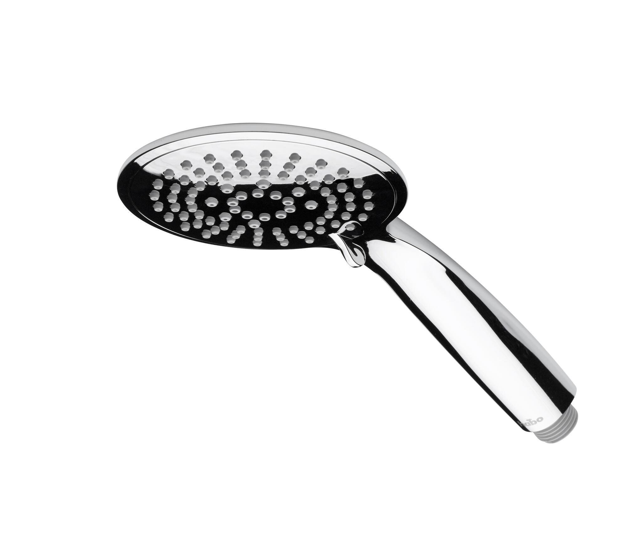 Håndbruser med 3 stråletyper. Med anti-kalk funktion. Rubber clean-gummi på dyserne gør det nemt at fjerne kalk. Bruserhovedets diameter 110 mm. Passer til alle bruserslanger, g1/2. Vandbesparende funktion, 6,5 liter/minut.