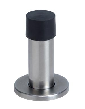 Anvendelse Dørstop til gulvmontage med roset. Konstruktion Leveres enkeltvis ekskl. skruer. Mål roset: Ø53 x 5 mm Mål dørstop: Ø20 x 75 mm Udførelse ScanFlex er produceret af rustfrit stål AISI 304 med sort gummi buffer.