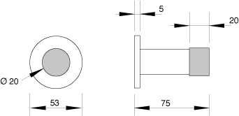Leveres enkeltvis ekskl. skruer. Mål roset: Ø53 x 5 mm Mål dørstop: Ø20 x 75 mm
