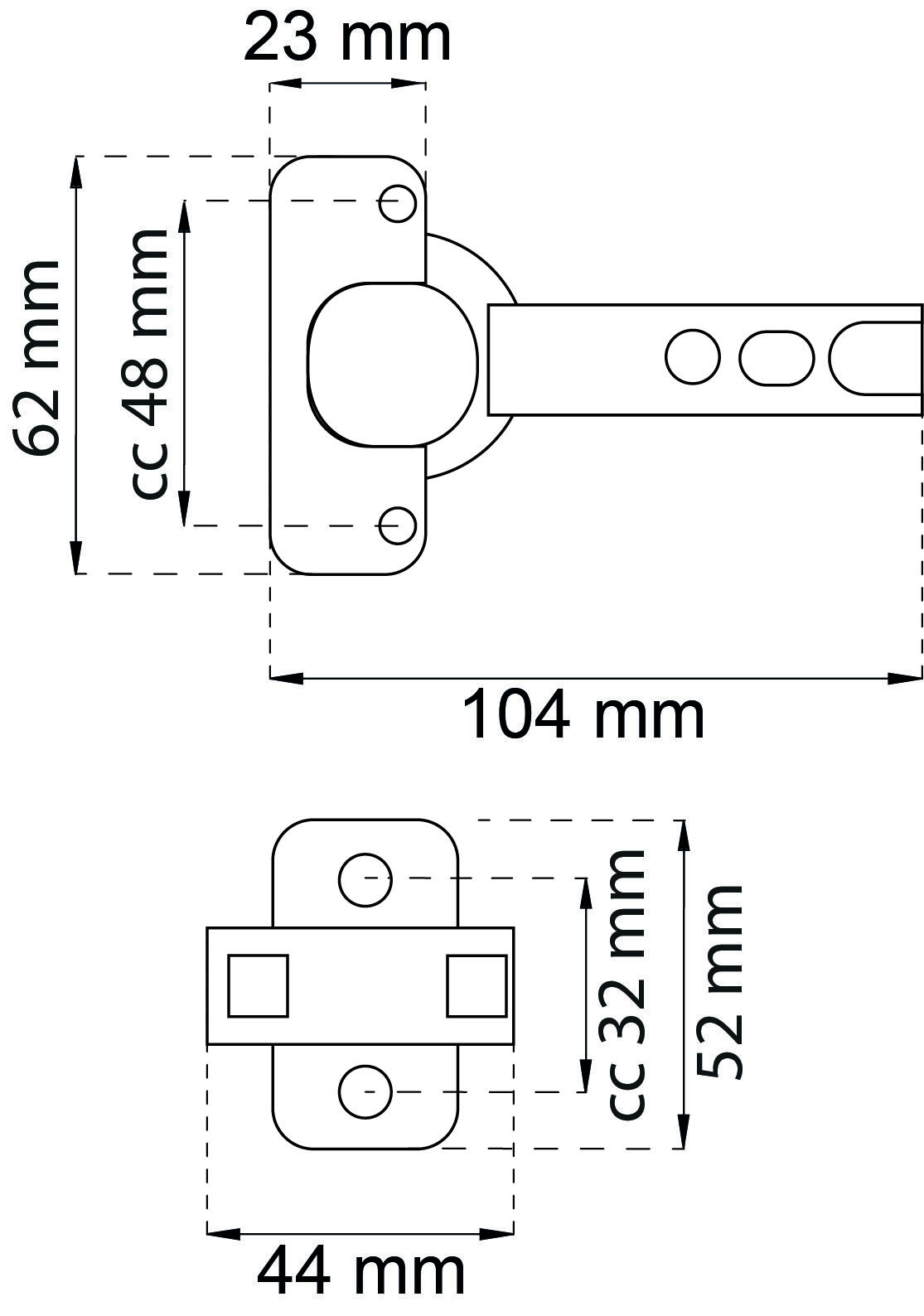 Selvlukkende skabshængsel af stål. Åbningsvinkel 110°. Diameter 35 mm. Velegnet til nymontering. Anbefalet udfræsningsmål: 35 mm. Pakke a 2 stk.