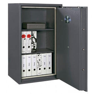 Godkendt til opbevaring af kr. 40.000,00 u/alarm og kr. 80.000,00 m/alarm. Inkl. 2 hylder. Plads til 21 ringbind.