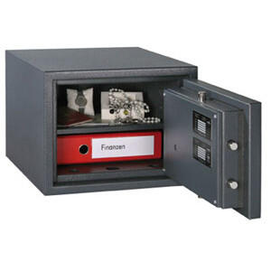 Leveres m/nøglelås. Inkl. 1 hylde. Plads til 2 ringbind. Godkendt til opbevaring af kr. 5.000,00 u/alarm og kr. 15.000,00 m/alarm.