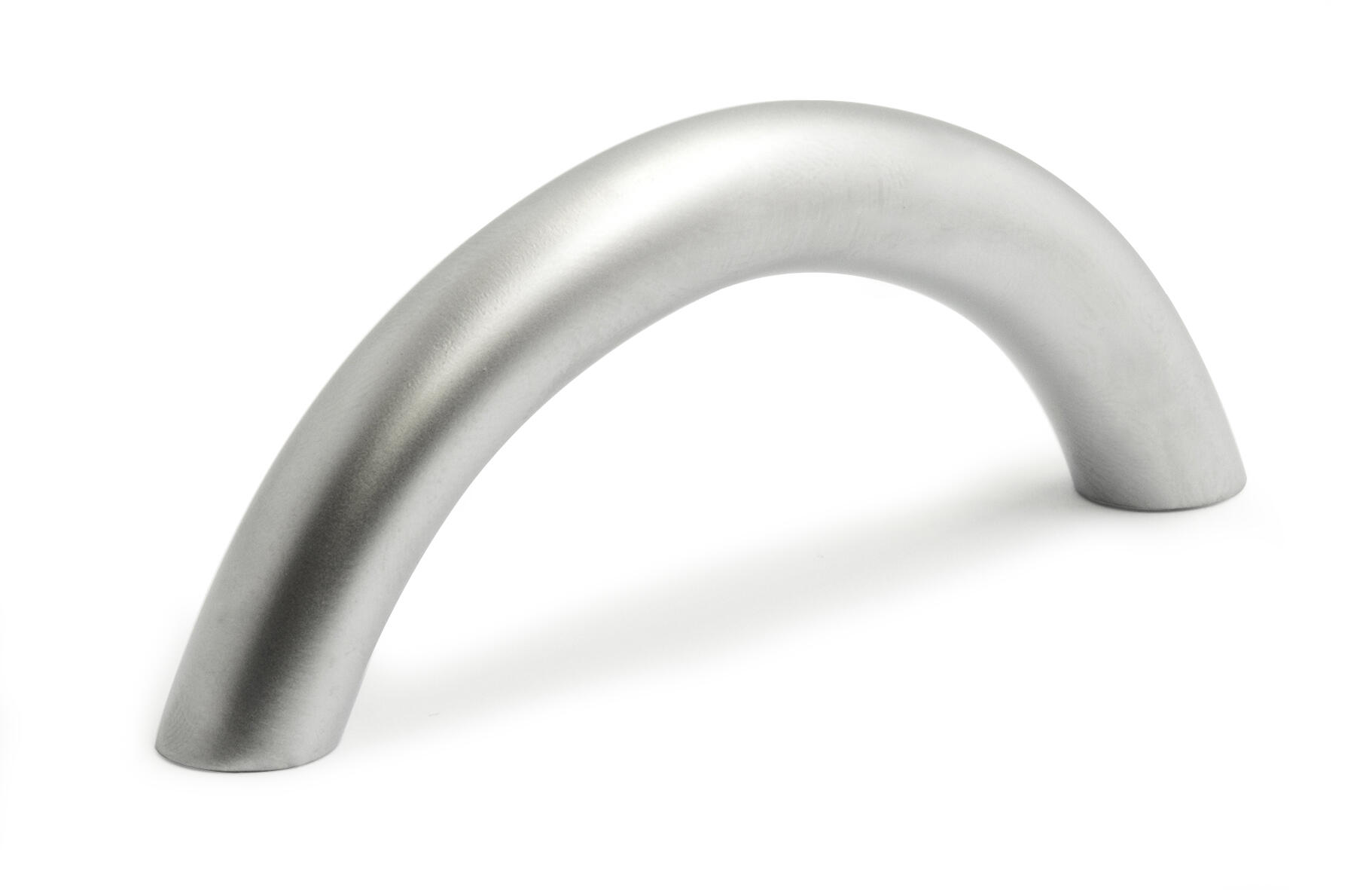 Møbelgreb i zink/zamak med børstet krom finish. Længde: 80 mm. Højde: 30 mm. Ø 10 mm. Centermål: 64 mm. Skruer medfølger. Leveres i en 2 styks forpakning. En klasikker til låger og skuffer.
