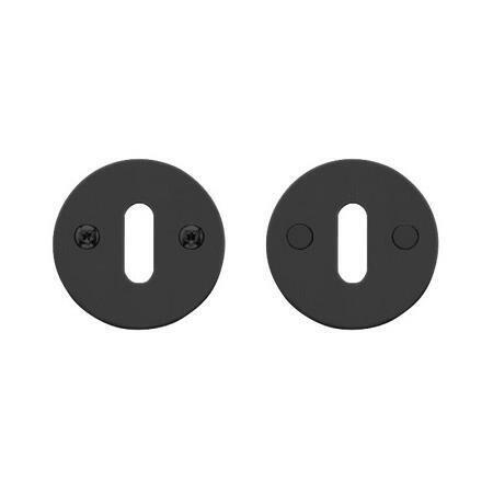 Randi Line 18 nøgleskilte 7100, sort PVDNøgleskilt med massiv roset. ø50x2 mm.Leveres i sort PVD coated overflade, rustfrit stål (AISI 304).Med løse bøsninger og synlige skruer, centerafstand 27 mm. Leveres i sæt inkl. M4x84 mm. skruer.