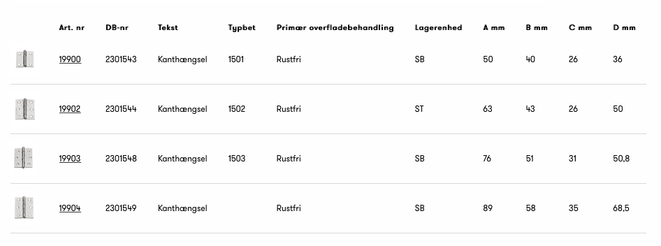 Kanthængsel af rustfrit stål. Leveres med skruer. Pakke a 2 stk.