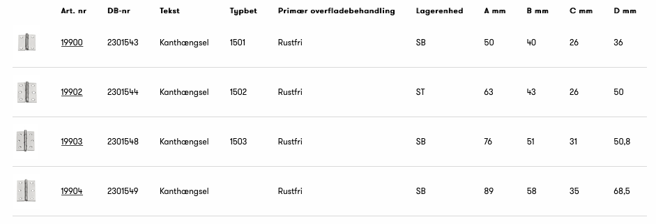 Kanthængsel af rustfrit stål. Leveres med skruer. Pakke a 2 stk.