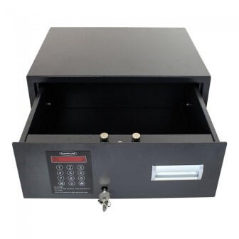 Kompakt værdiskab med udtræksskuffe og elektronisk lås.