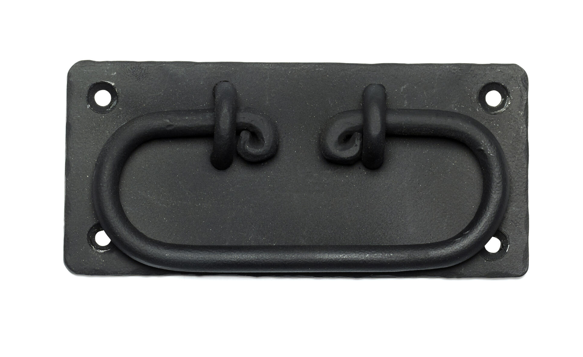 Kufferthåndtag af smedejern med rustik og landligt karakter. 112x50 mm. Leveres med skruer.