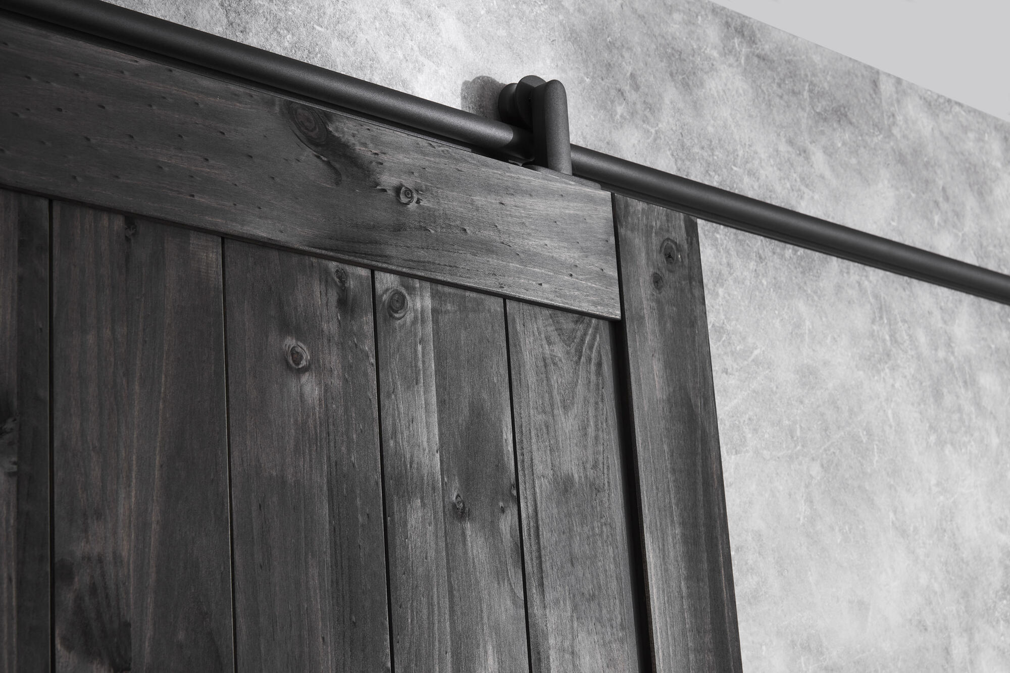 Komplet skydedørsbeslag i sortlakeret aluminium. Til vægmontering. Let at montere til både hjemmefixere og professionelle. Stilfuldt og moderne design, der tilføjer både funktion og personlig stil til hjemmet. Skjult fastgørelse takket være skinnen, der klikker over ophængsskinnen. Leveres med 2 topmonterede skydedørsruller, 2 meter skinne, 1 styre klods til glasdør, 1 styrelås til trædør, 2 stopbeslag, skruer og installationsvejledning. Beregnet til dørbredde maks. 100 cm. Dørvægt max 90 kg. Passer til døre med dørblade 35-45 mm.
