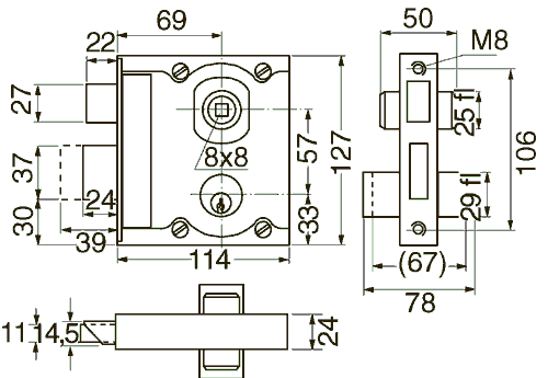Lock case and bolt of yellow chromated steel. Fall of brass.
