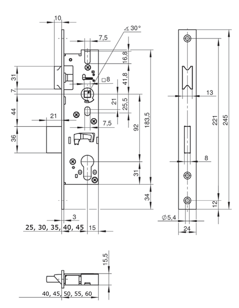 Drop and bolt lock with 20mm bolt projections in one go. The lock case is reversible - delivered only in the left version Used with end plate 1438 (item number 373460). Stainless steel post. Box in zinc-treated steel. Trap and bolt in chrome-plated steel