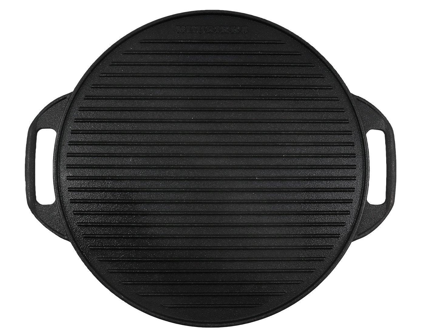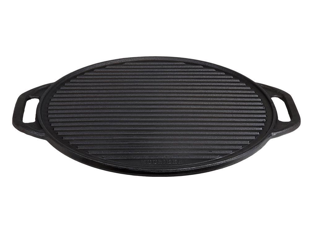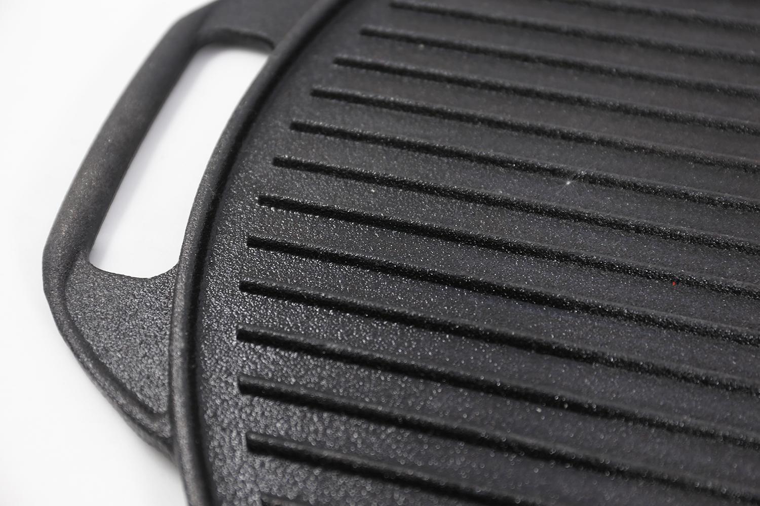 Med den støbejernsgrillpande kan du stege/grille mad med mindre fedtstof og få flotte riststriber. Støbejernspanden holder varmen jævn og tåler hårdt brug og varme. Du kan også bruge den jævne bagside af grillpanden uden gitterstriber til stegning. Velegnet til gas, åben ild og elektrisk grill. Nem at rengøre.