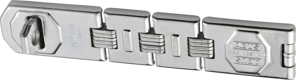 Til kasser, skabe, kister, havekasser osv., hvor der skal fastgøres et overfald i hjørnet, er vores leddelte overfald 110 velegnet. Den har et øje i hærdet stål, hvilket gør det meget sværere at slå eller bryde den op. Skruerne er skjult efter montering, og hængselstifterne er beskyttet mod at blive uddrevet. Følgende gælder nemlig for alle sikkerhedsløsninger: Jo længere tid det tager for en tyv at bryde ind i noget, jo større er chancen for, at han giver op og går videre.