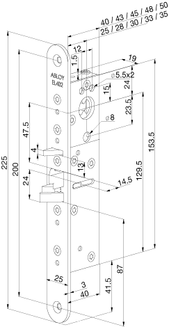 Anvendelse Fallelås til ud- og indvendige smalprofildøre. Må ikke anvendes i branddør eller døre med listetryk.