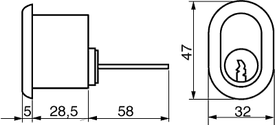 Oval sylinder For rasjonelle terrassedører og spesielle industri- og møbellåser.