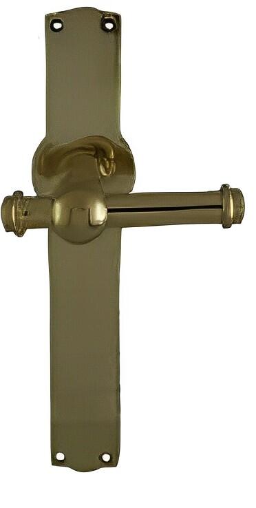 Klassiske gamle dørhåndtak, for innvendig og utvendig dør, I ubehandlet polert messing, Med lange skilt uten nøkkelhull