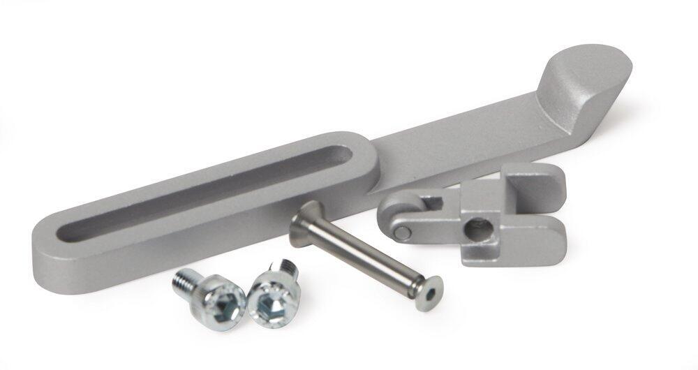 Beslagsæt G120 består af fangarm og 2 skruer. Anvendes til dørlukkesystem G461, G462 og G464 modsat hængselsiden.