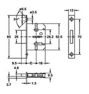 Møbellås 665-40mm H+V incl Nøgle MS Elz S 12 x 85mm