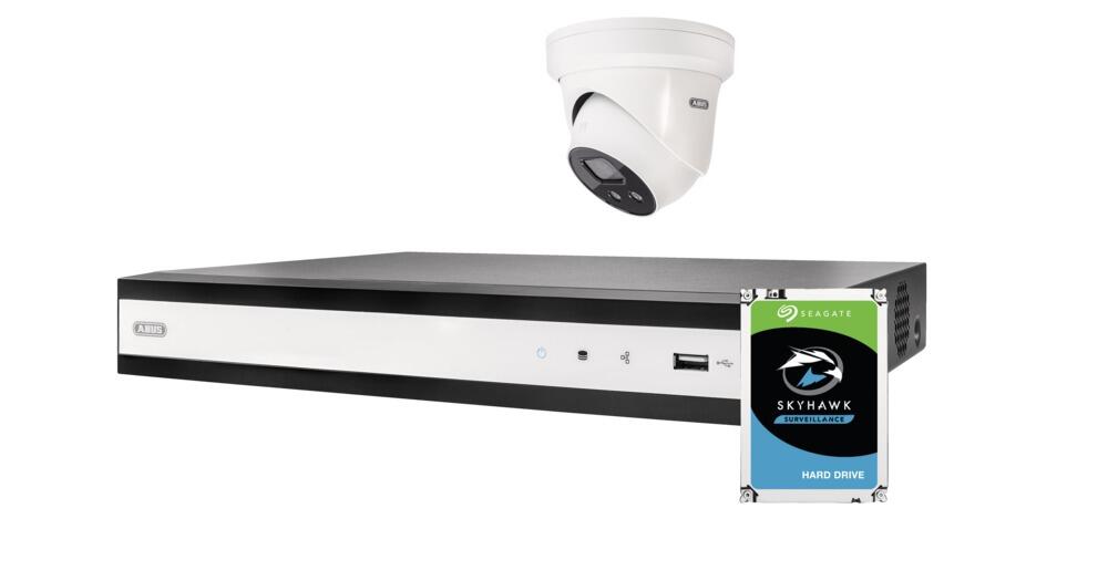 Netværksvideooptageren (NVR) kan placeres efter behov: I et serverkabinet eller blot ved siden af den skærm, hvorfra den betjenes. Også praktisk: NVR'en forsyner op til 4 IP PoE-kameraer med strøm via netværkskabel (Power over Ethernet, PoE) – hvilket ofte sparer omkostninger på svært tilgængelige installationssteder. Ideel til opsætning af et kompakt og professionelt overvågningssystem. Du skal blot integrere en 3,5-tommers harddisk i NVR'en (tilbehør), så kan videobilleder gemmes og vises i Ultra HD-opløsning.