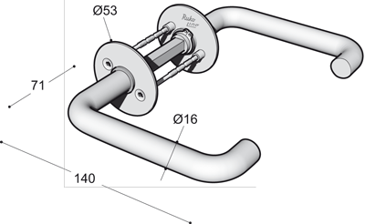 Dørhåndtak med rosetter for dørtykkelser 32 - 85 mm.