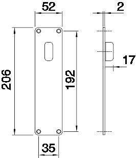 8658-520 Langt skilt med svingbart håndtak 52x206x2mm Rustfritt stål