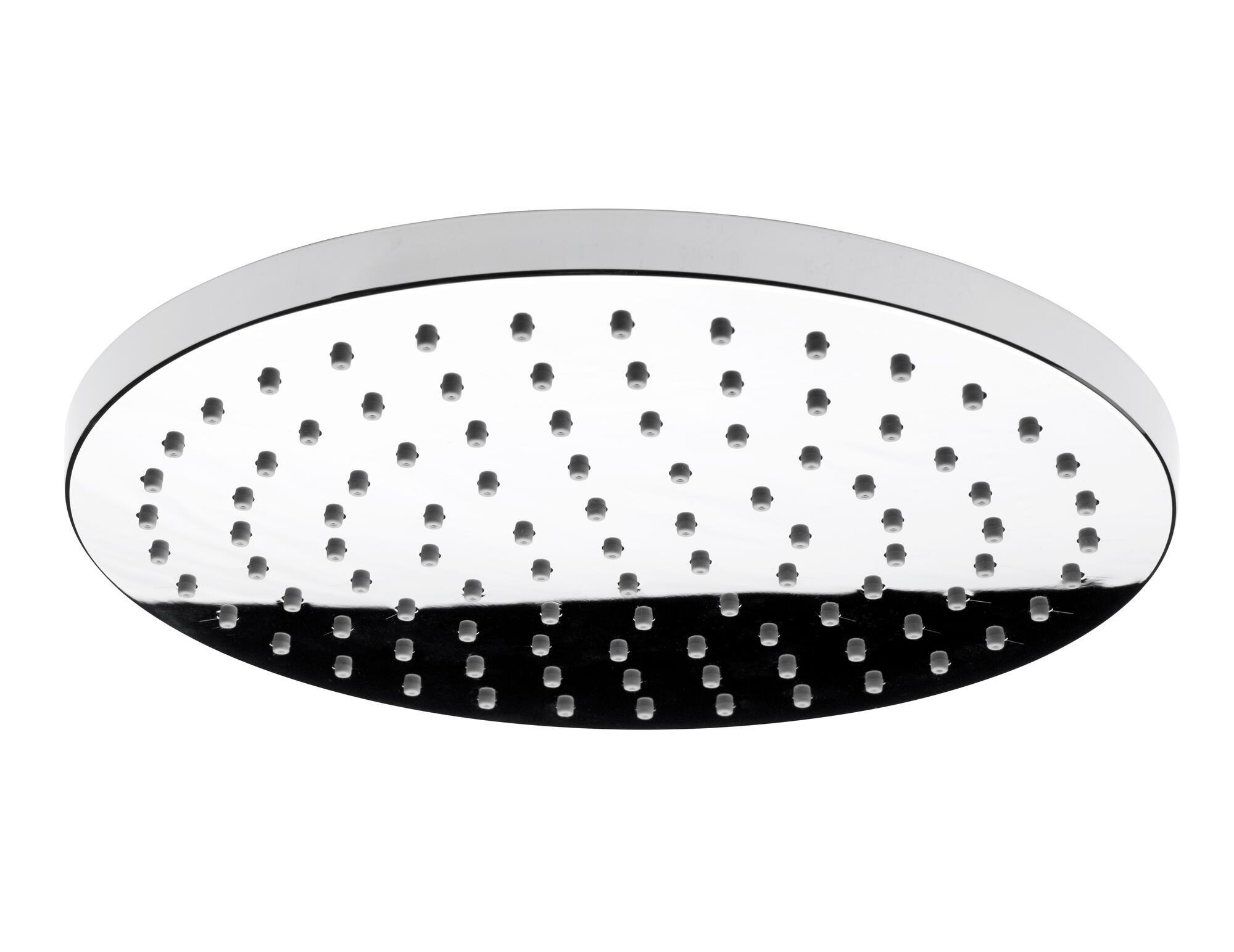 Moderne og stilfuld rund loftsbruser. Diameter 250 mm. Med anti-kalk funktion. Rubber clean- gummi på dyserne gør det nemt at fjerne kalk. Standardtilslutning 1/2" med bevægeligt led.