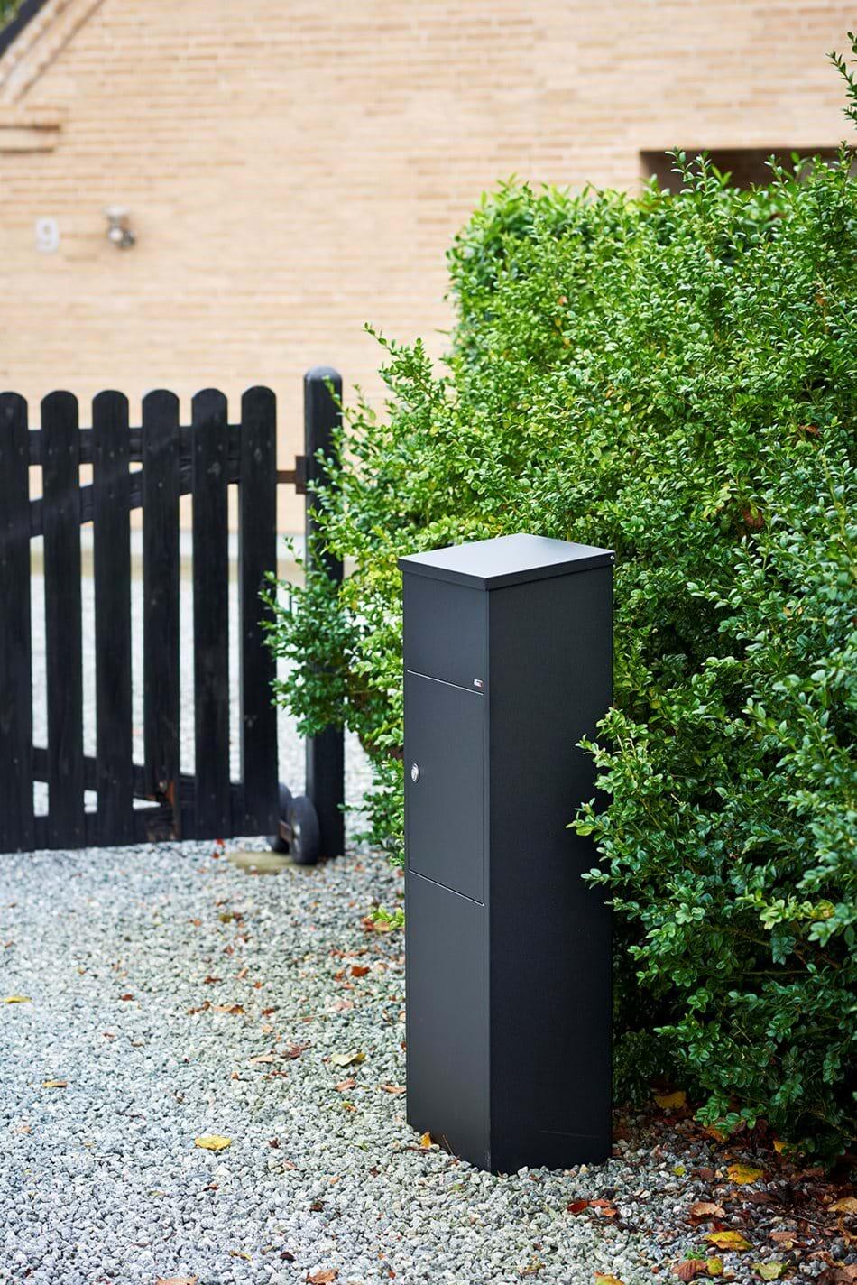 Pakkepostkasse i nyt design, der kan modtage meget store mængder post og pakker. Indkastet er stabilt og kraftigt og designet således, at pakkerne ikke kan "fiskes" uønsket op.