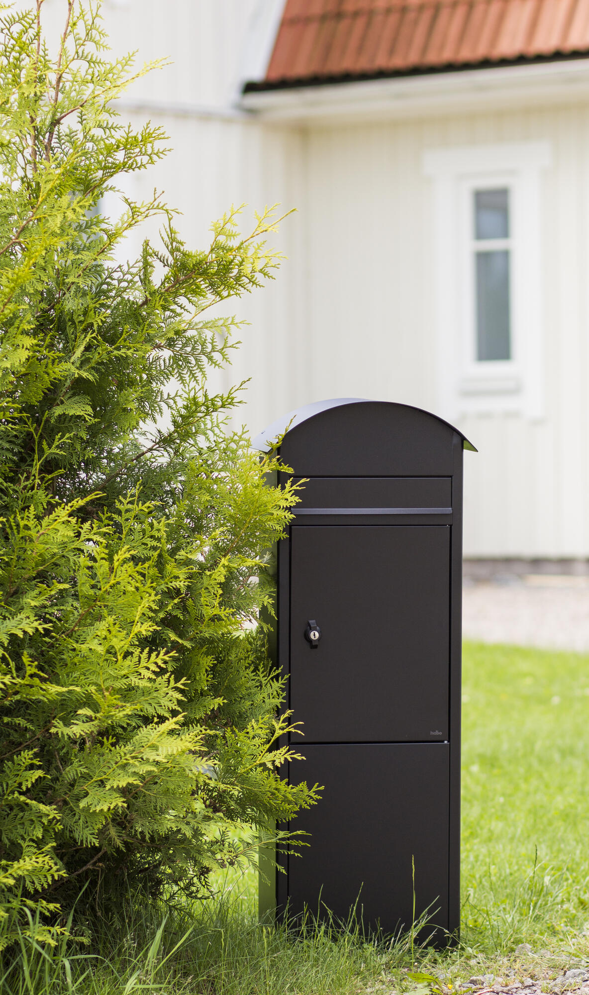 Låsbar postkasse af pulverlakeret stålplade. Kan anvendes som ugepostkasse. Kan anvendes ulåset. Enkel at lave om til ugepostkasse ved at fjerne en plade. Leveres med stolper. Brevindkast: 292x45 mm.
