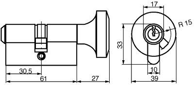 Dobbelt Profil med knop cylinder Til montering i DIN låsekasser. Fastgøres med 1 skrue.
