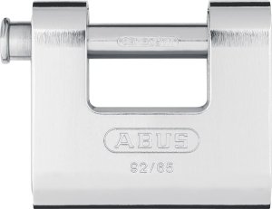 Bolthængelås i stålbelagt messing med bøjle i hærdet stål.