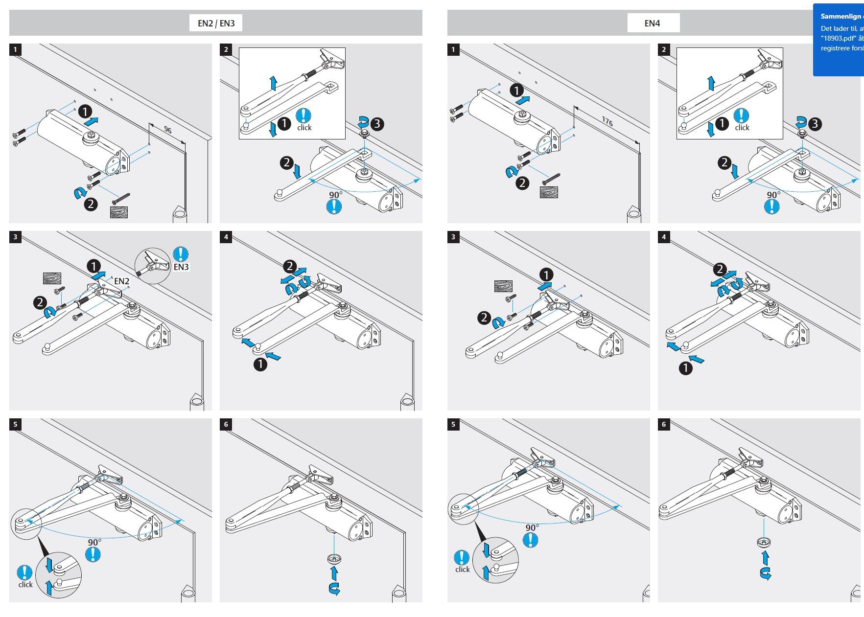 - Kan monteras både på dörrens gångjärnssida och på ramen, mittemot gångjärnssidan